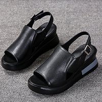 【本革サンダル】通気性がよく快適 露出が少ないデザイン 安定感のあるウェッジソール 滑り止め 耐摩耗